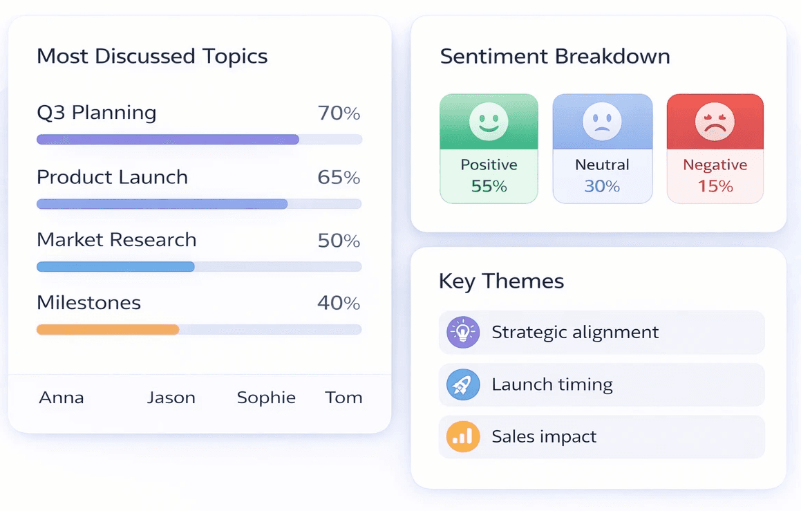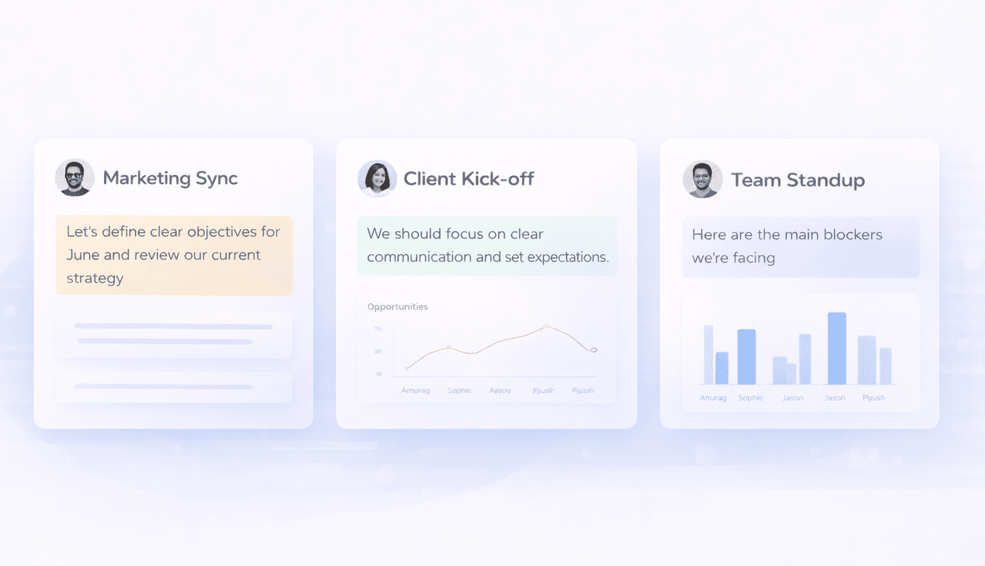 Clear summaries, priorities, and next steps help teams follow up faster and make confident decisions.