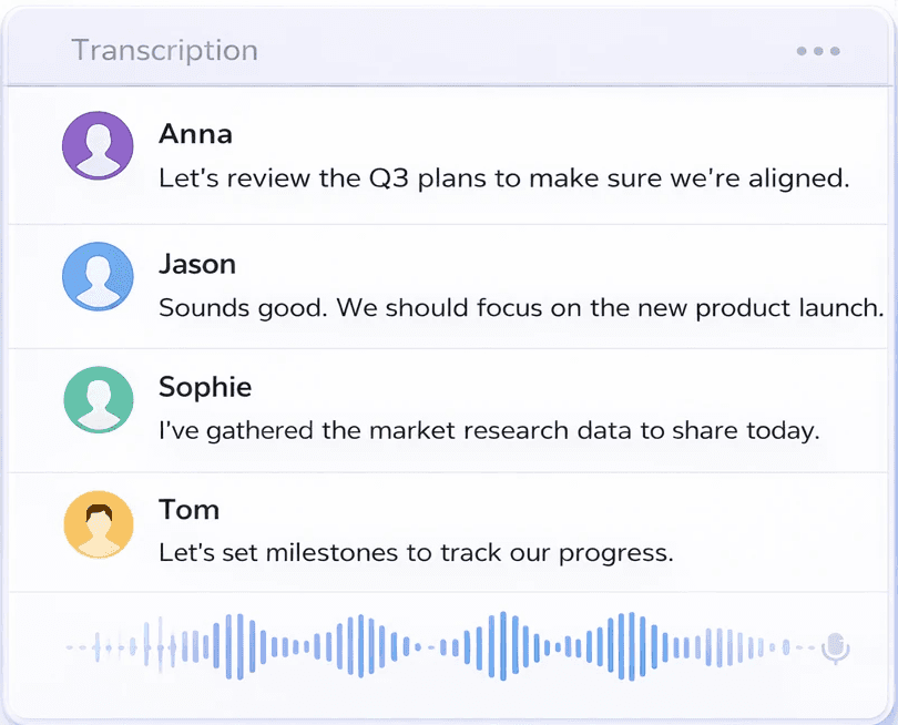 Automatically capture business conversations across meetings, calls, and discussions without manual effort.