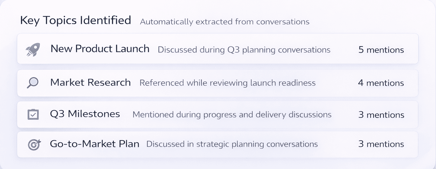 Meetings, calls, and everyday discussions important context is created everywhere teams talk.